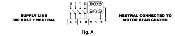 F - collegare il motore ai morsetti UVW e il centro stella del motore al morsetto N (il motore deve essere necessariamente collegato a stella).